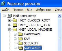 В редакторе реестра нужно перейти по ветке HKEY_LOCAL_MACHINE - SOFTWARE: