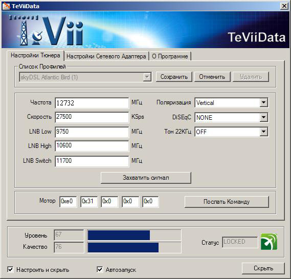 Нажмите Захватить сигнал. Поставьте галочки: Настроить и скрыть, Автозапуск