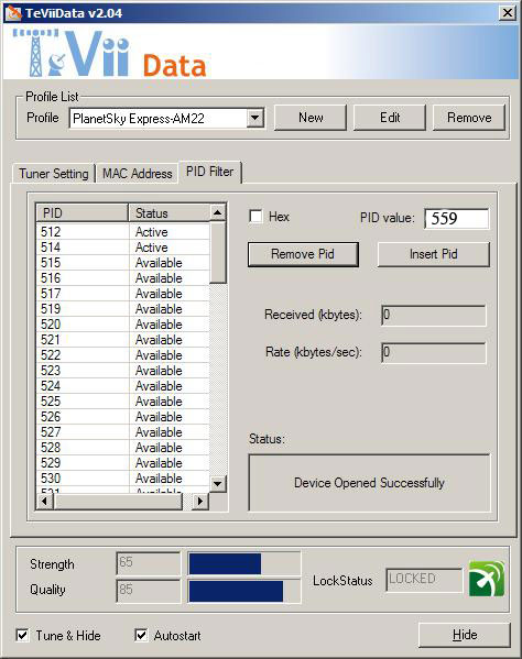 Перейдите на вкладку PID Filter. Внесите в строку PID value значение, которое вы указали при регистрации (стандартно