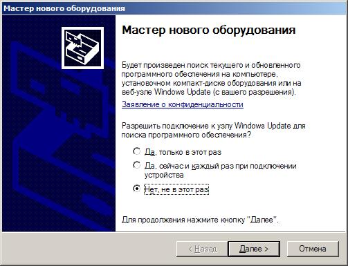 драйверов или установочного диска . Щелкните Далее>