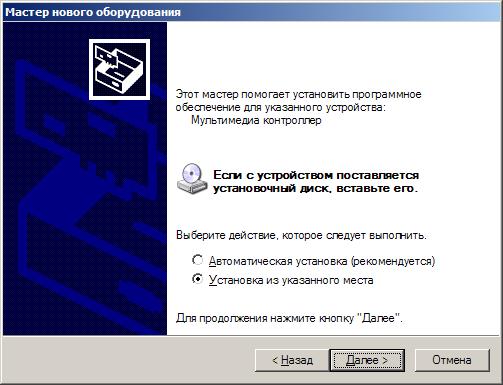 Укажите установочный диск или путь к драйверам