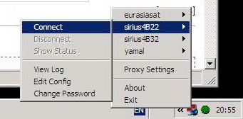 При желании , для того чтобы корректно отображались названия спутников в списке можно переименовать файлик sirius3.ovpn например на sirius4B22.ovpn .